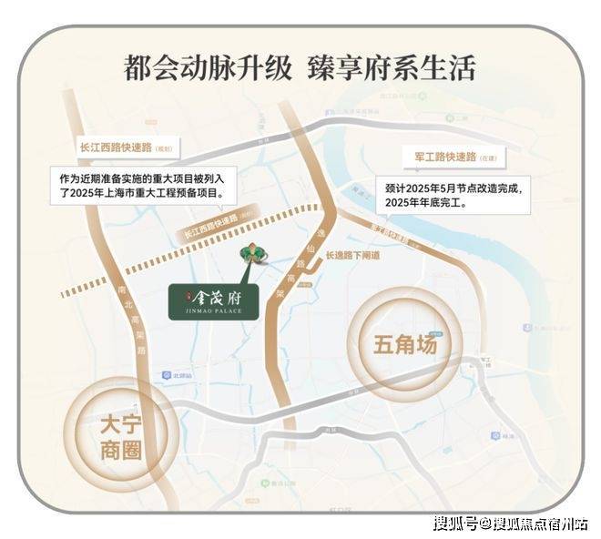 另一方面,军工路快速路新建工程预计今年年内完工(来源:上海发布),意味中环北抬今年将迈出重要一步,第二步长江西路快速路已被列入2025年上海市重大工程清单,预计即将开工——届时,江湾金茂府就将从“中环旁”升级为“中环内”!