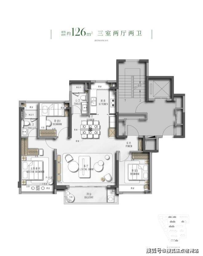 1、光感户型:约114㎡户型双阳台面宽超6米