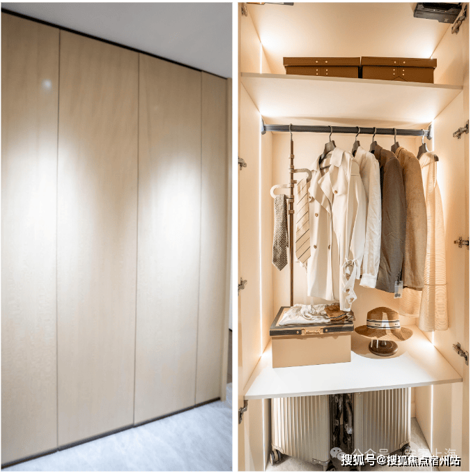 最令人惊艳的,莫过于项目将原本易被忽略的过道转化为实用收纳区——打造了少有的“过道柜”,无论日常衣物、换季的厚被子,还是不常用的生活物件,都能在此找到规整安放的位置。