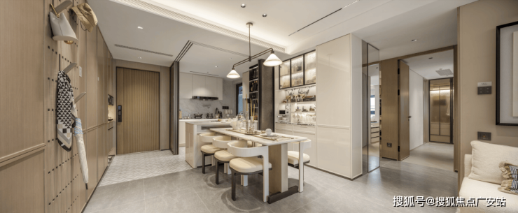 玄关S墙设计,同样包含MAX巨量收纳;创新性采用了钢琴键收纳,600万级的刚需项目中能享受大几千万的豪宅配置;