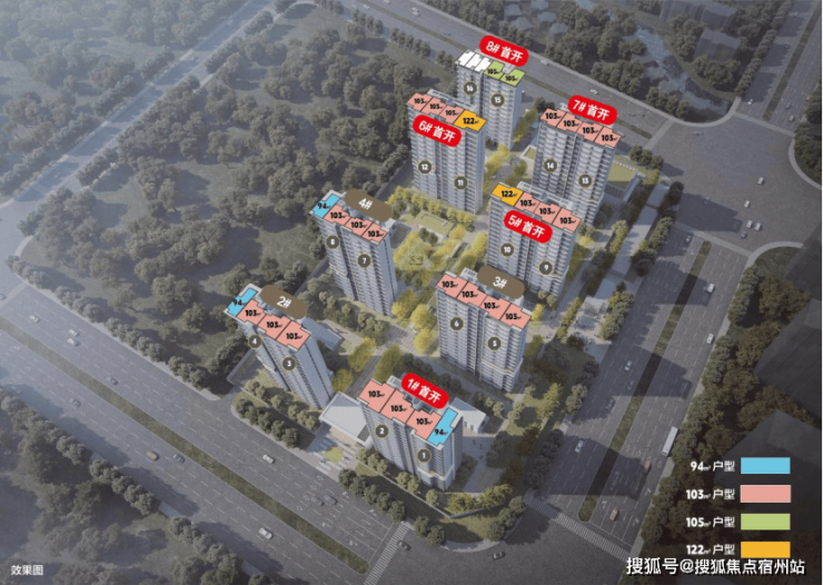 户型方面,主力产品建面约94-122㎡3-3+1房。