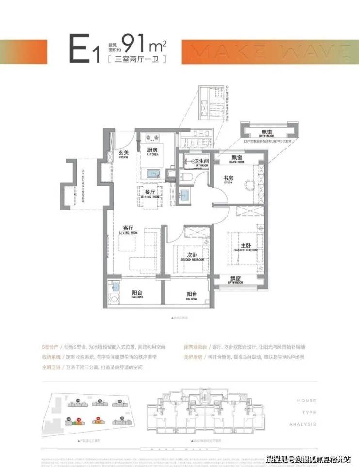 “南向双阳台+南北双飘窗”,构筑真3房户型!