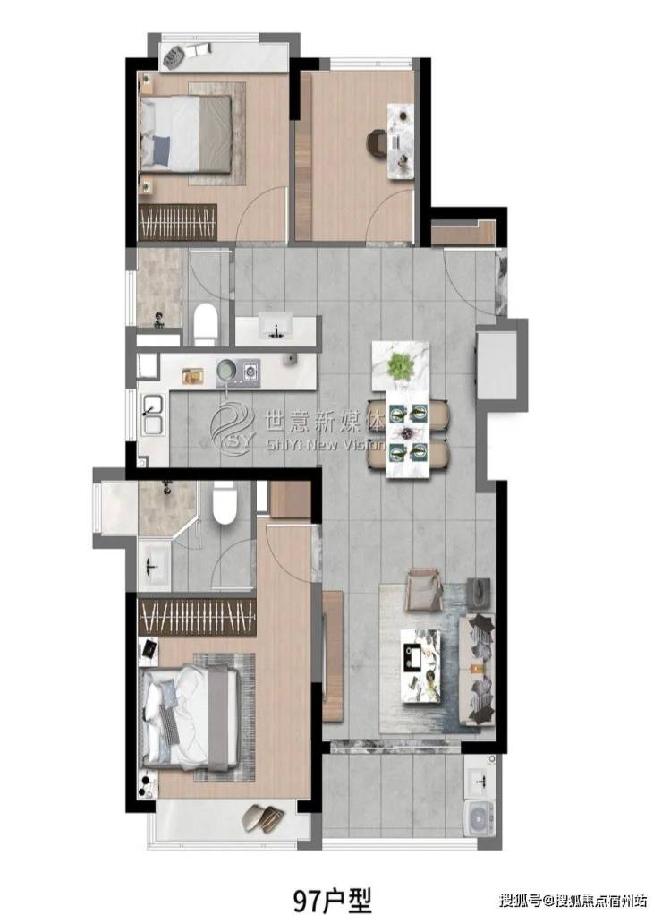 高层建面约97㎡3房2厅2卫