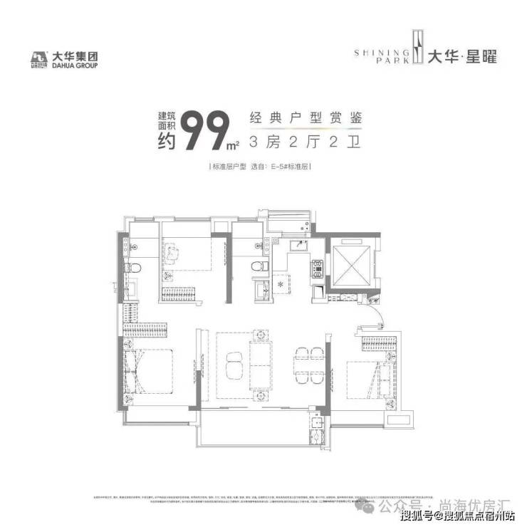 项目建面约99㎡-135㎡的户型,均是横厅设计,尺度感惊人优越的窗墙比,南向3.5开间面宽最大程度上提升了采光。