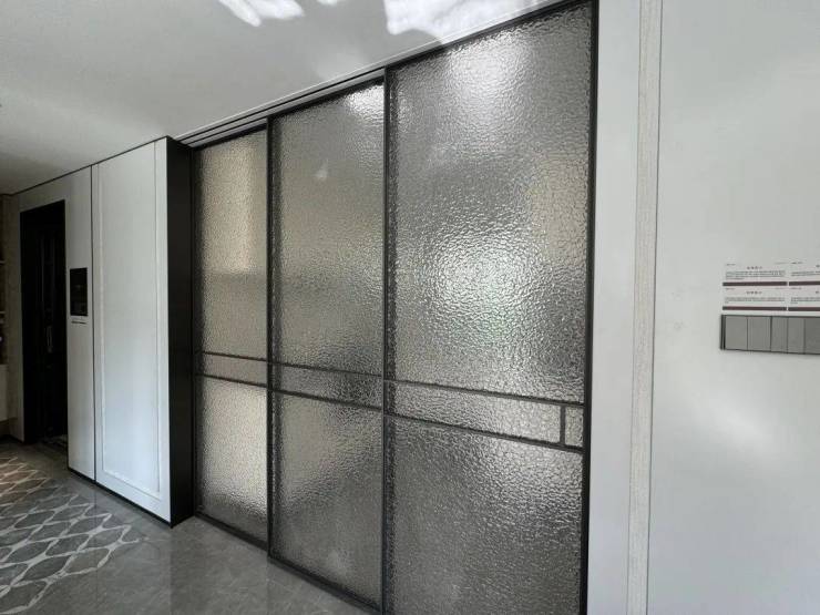 厨房移门是类似于水波纹的三移门,不占空间,上轨道设计,更易于日常清扫。