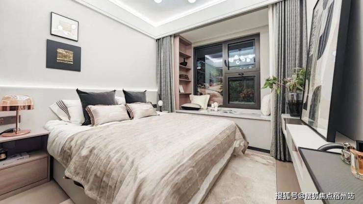 第四个亮点,是 南向主卧套房设计,不仅能放得下2*1.8米双人床,且还能保留约1米的过道;同时带独立卫生间和大飘窗,增强私密性。