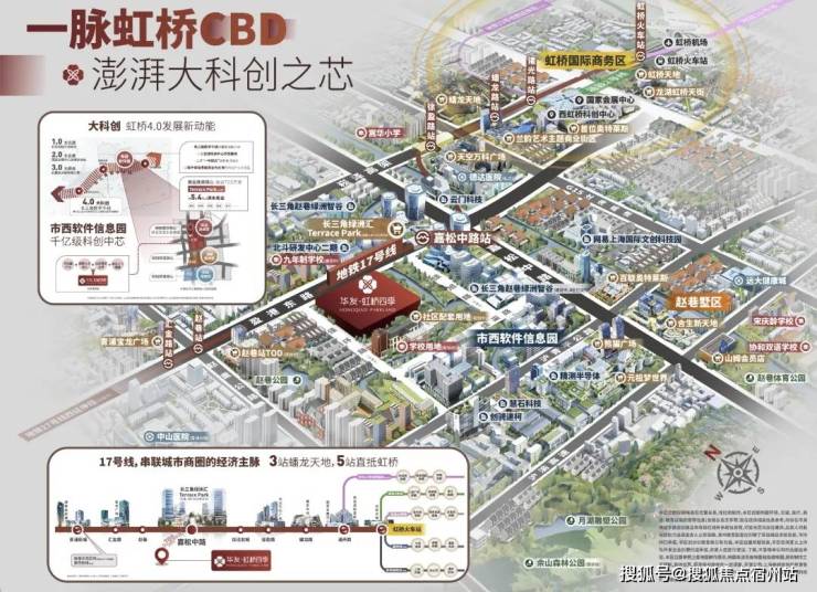 青浦区基于”一城两翼,一带三核” 发展战略目标,正着力推进东翼(赵巷商业商务区+西虹桥商务区)发展为国际一流的现代服务业集聚区。并通过17 号地铁线串联起三大核心节点,东起徐泾北斗产业基地,西到金泽华为研发基地,中部核心就是赵巷市西信息软件园。预期,未来这条产业带上,将会有65万高端人口导入
