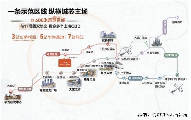 保利虹桥和颂·IN255不仅有轨交规划正在落地,且直线距离示范区线赵重公路站(在建)仅约350米,是不可多得的真轨交盘,2站前湾、3站虹桥枢纽、5站华为基地。