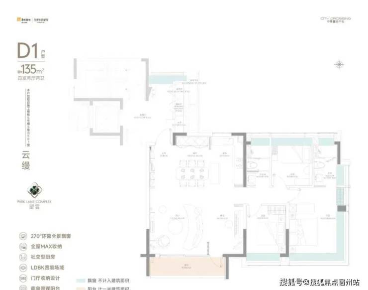 超大尺度与超强采光面,四开间朝南+主卧270°无柱转角飘窗+灵动空间设计,豪宅基因与品质感跃然于眼前,全市改善稀缺品种。