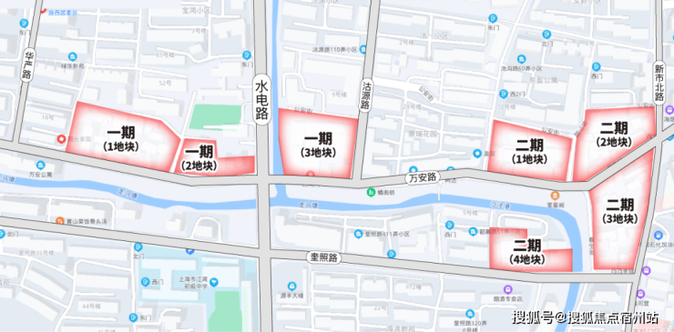 总共7个零散地块,是一个毛地城市更新项目。中间穿插了两条自然河流,一座滨河绿地,多条道路,各自体量都不大,但沿万安路连成一线。