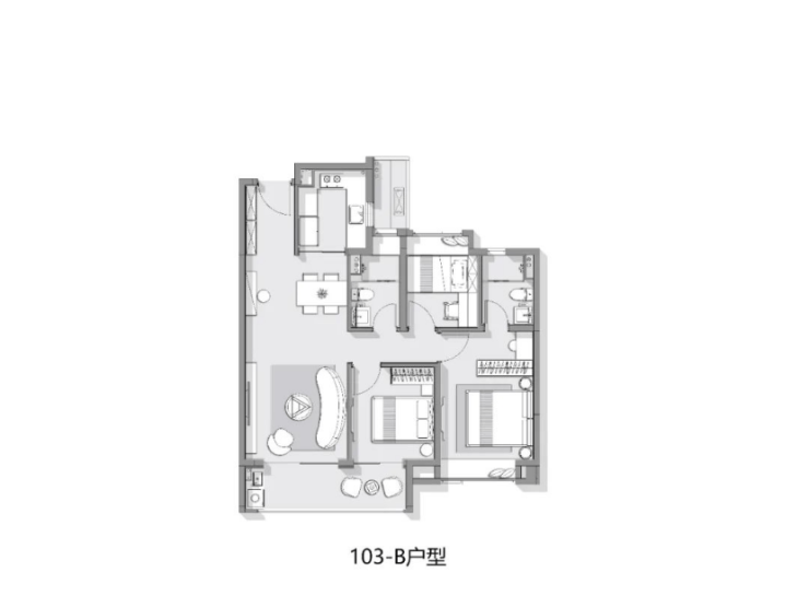 建面约103㎡3房2卫户型图: