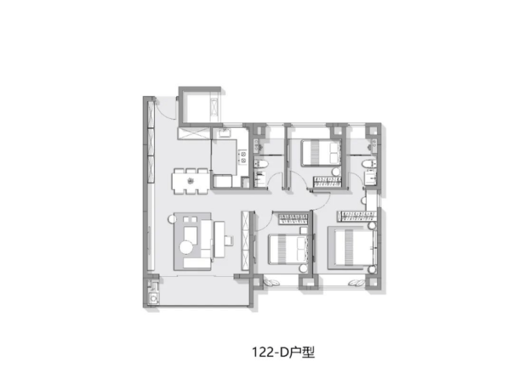 建面约122㎡3房2卫户型图:
