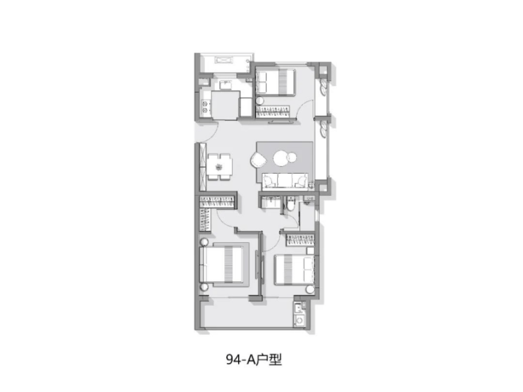 建面约94㎡3房1卫户型图: