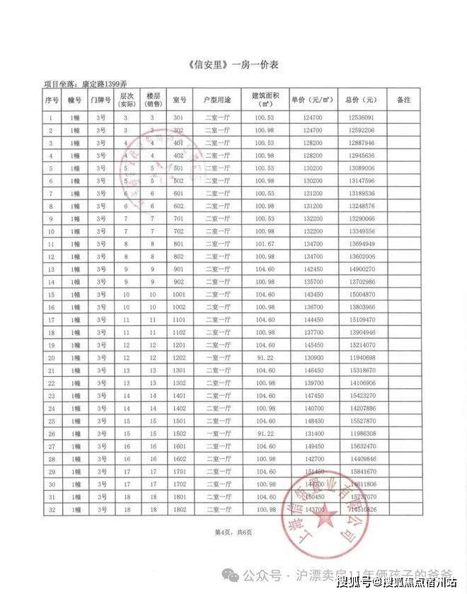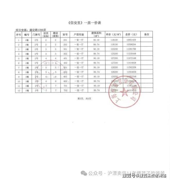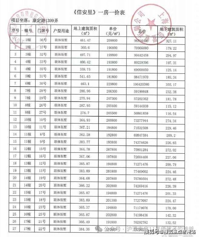 别墅一房一价表: