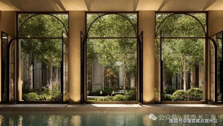 NO.8 花园泳池 波光潋滟处,拱形门窗外花影摇曳,一池春水将四季芳菲溶成流动的油画。