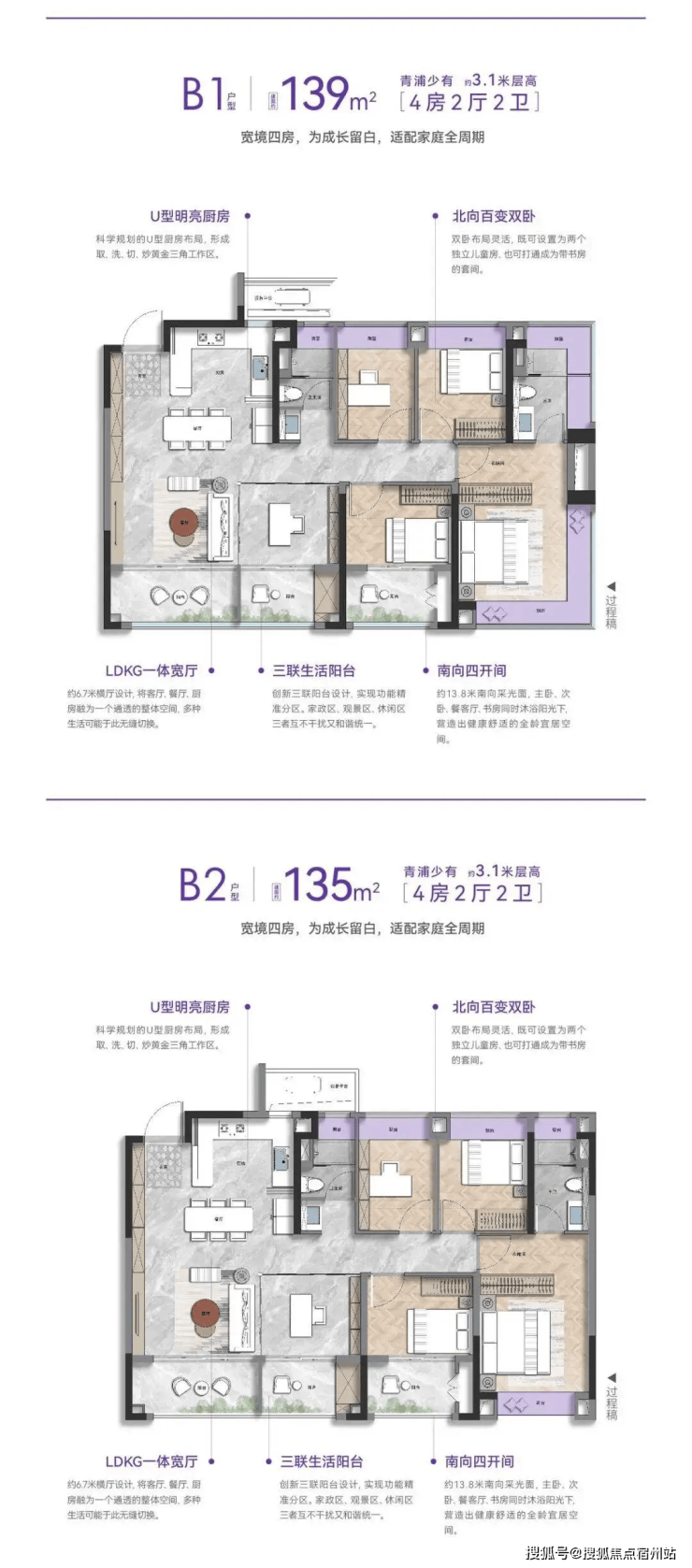 2. 建面约 139㎡四房两厅两卫 —— 改善主力爆款,得房率 82%