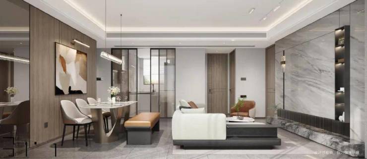 售楼处设计源自伦敦与上海半岛酒店的优雅复古,将现代极简主义美学运用到极致。沙盘区景墙将取材Celine御用石材宝格丽黑大理石,以永不过时的摩登气息,点睛空间的奢华精致。