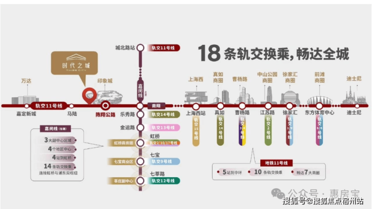 时代之城直线距离11号线陈翔公路站约900米,已经能够实现迪士尼自由,当然乘上地铁去内环、徐家汇、前滩,也是随心所欲一句话的事情,可换乘13条轨交串联多数商圈。