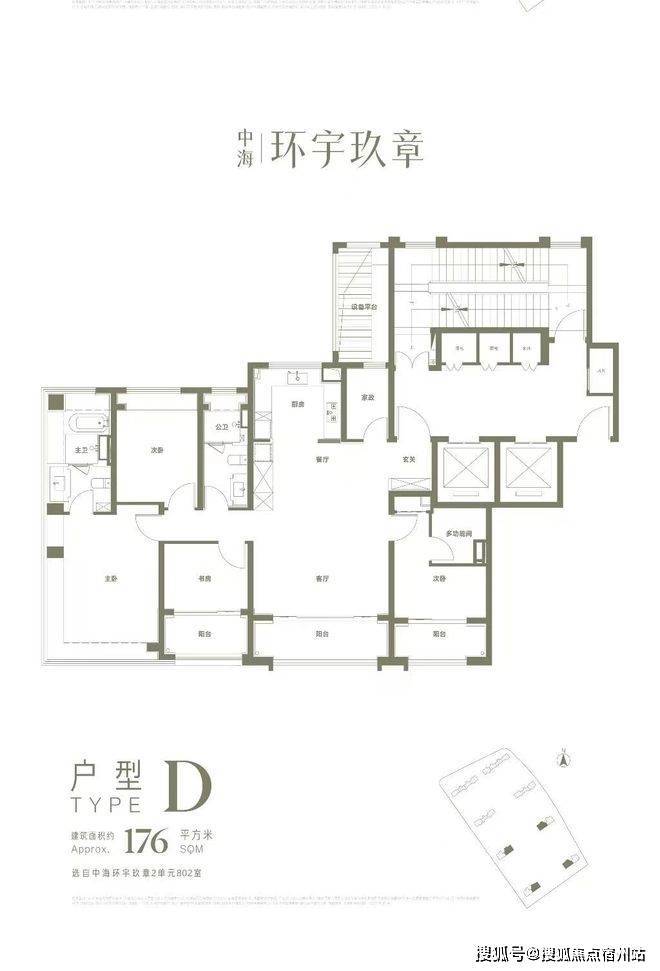 建面约 176㎡四房两厅三卫:终极改善大宅,酒店级精装,家政间 + 双阳台设计,收纳空间达 32.5㎡,主卫三飘窗,全景舱级采光。