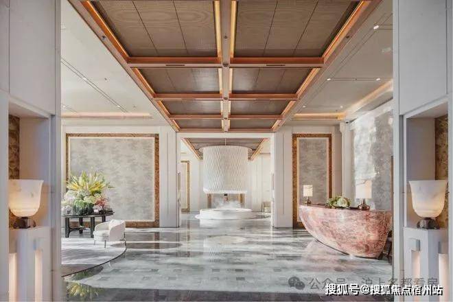 再往里走就是迎宾区,整个公区部分由世界顶级的奢华酒店设计专家CCD负责设计,4.5米的层高直接打造出了顶奢酒店的质感。
