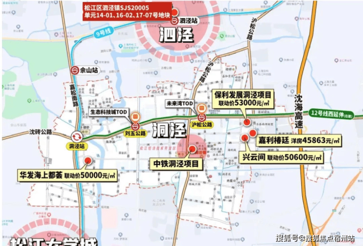 2024年1月10日,上海新年的首次土拍活动中,招商蛇口以52.5亿的价格竞得松江区泗泾镇SJS20005单元的14-01、16-02、17-07号地块(也被称为泗泾镇TOD项目)。