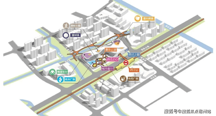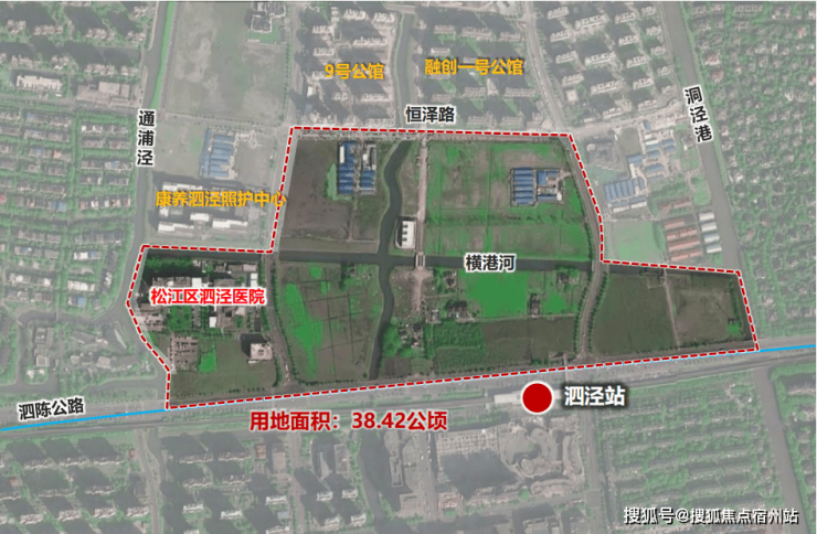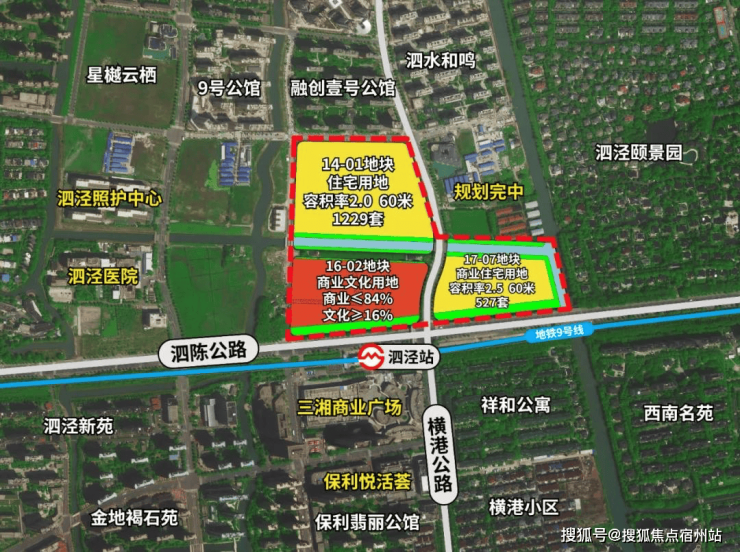 泗泾镇TOD项目位于9号线泗泾站地铁上盖,东至洞泾港,南至泗陈公路,西至外婆泾路,北至恒泽路,共计由3幅地块组成,包含住宅、商业、文体等多种业态。