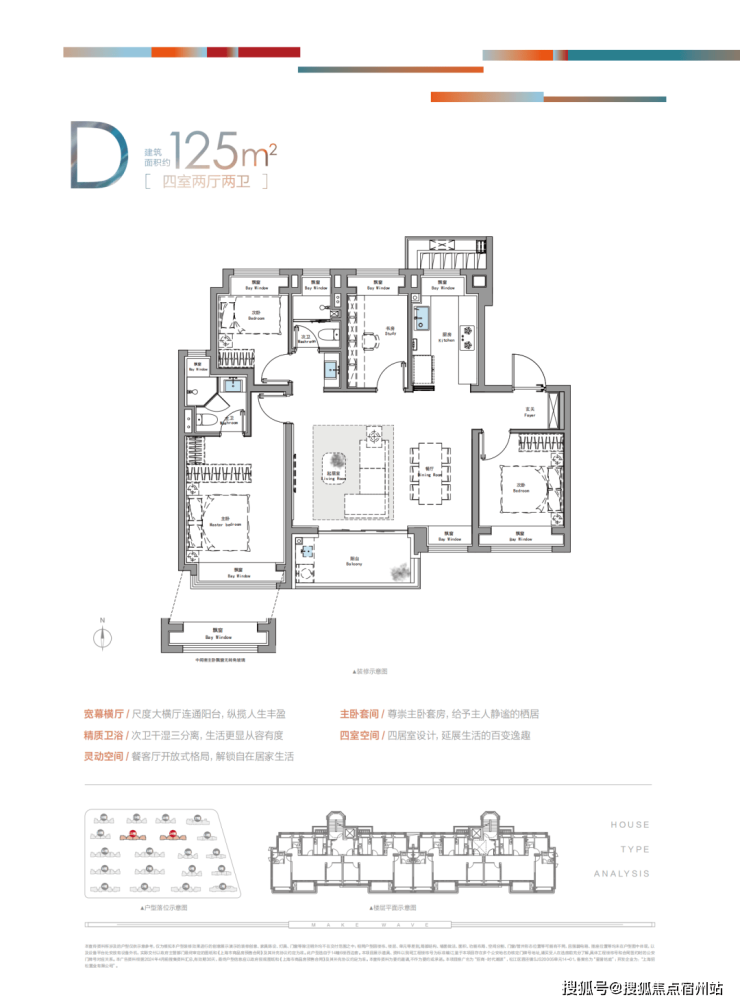 建面约125㎡4房 四开间朝南搭配一个巨幕横厅,让室内尺度与采光都达到了极致。