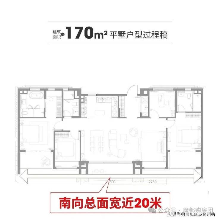 南向总面宽近20米,客厅和活动室加起来宽约9.25米, 还做了 双套房 ——主卧有独立卫生间和衣帽间,老人房也有独立卫生间,三代同堂住在一起也不挤,互不打扰。