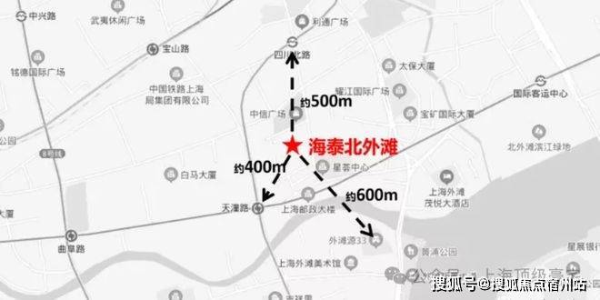 「海泰北外滩」位于虹口区四川北路塘沽路(江西北路以东,塘沽路以南,四川北路以西和规划七浦路以北),距离外滩源仅有600米