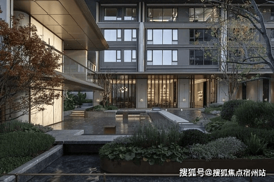 建筑形制,融现代简约与东方意蕴。外立面以真石漆为底,饰以香槟金铝板,线条利落,格调高雅。入户大堂,挑高九米,贝金米黄石材铺地,星辉屏风映壁。“四水归堂” 之制,复刻传统坡顶,暗合聚气纳福之古意。一砖一瓦,皆见匠心;一门一窗,尽藏风雅。