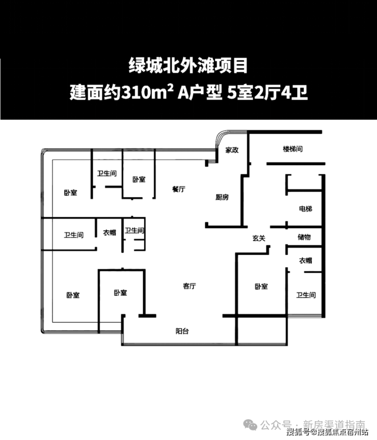 【绿城潮鸣外滩】户型落位正式分布,项目将推出建面约190㎡、200㎡、240㎡、280㎡和310㎡大平层。