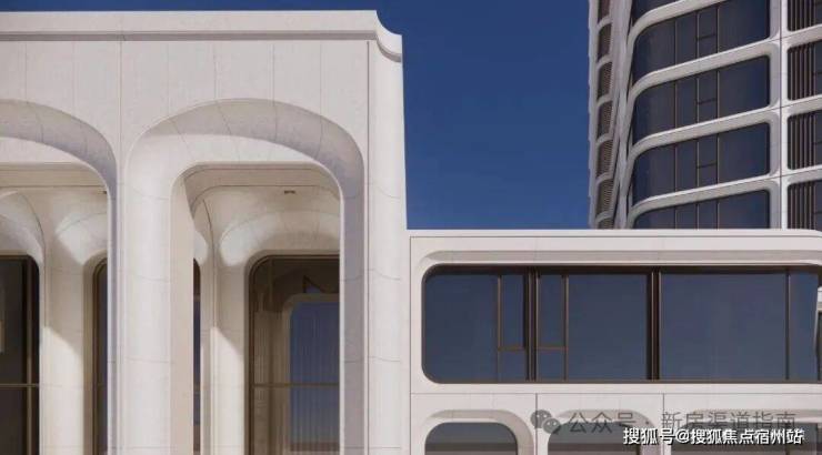 石材择选上,潮鸣外滩项目甄选贝金米黄,结合多重做法,下部白色石材,上部白色铝板(石材纹理转印),柱脚以皮革面质感处理,让建筑在与城市底蕴的交融中沉淀出内敛的优雅。
