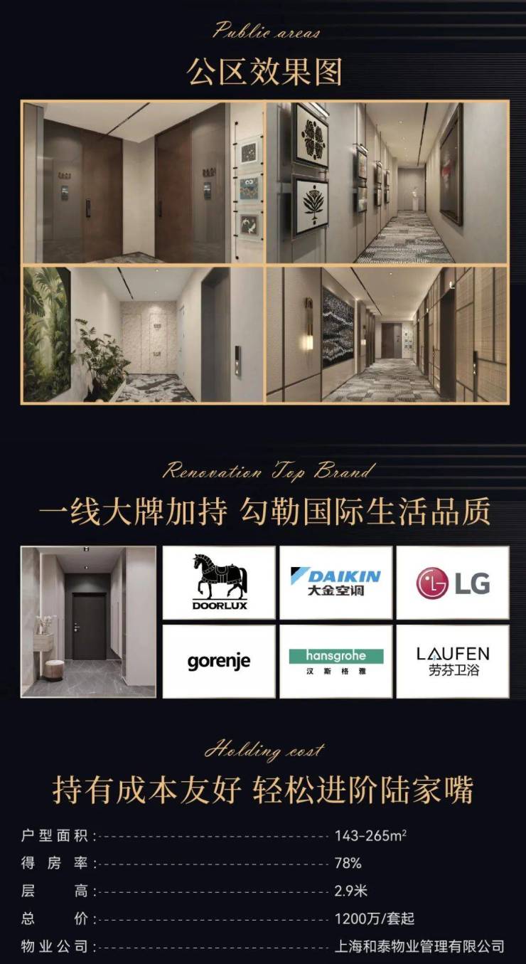 各大星级酒店加持:上海金茂君悦酒店、上海锦江汤臣洲际酒店,浦东丽思卡尔顿酒店、浦东香格里拉大酒店,浦东东方文华酒店、鲁能JW万豪侯爵酒店,上海和平饭店、外滩悦榕庄、上海柏悦酒店