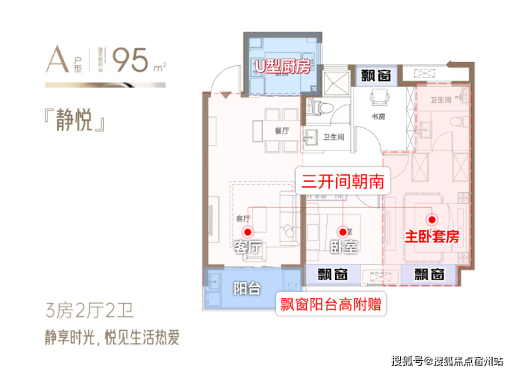 同样是设计水准一流的神户型,做到了 三开间朝南+主卧套房+三飘窗+南向观景大阳台 ,空间利用率以及营造的舒适度都保持在较高水准。