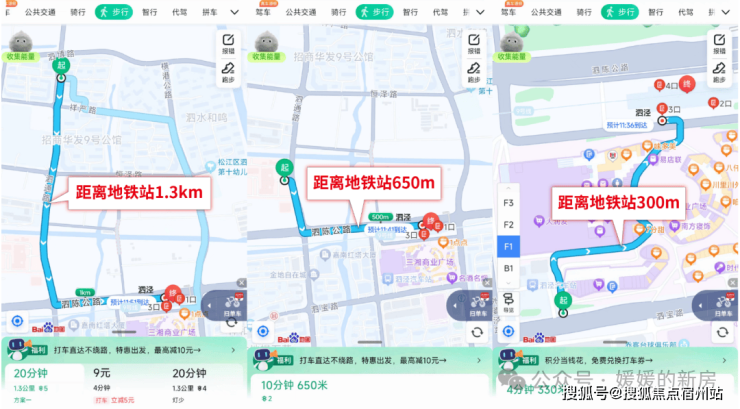 不同的距离步行到地铁站的差距有多少呢?来看百度地图的测距: