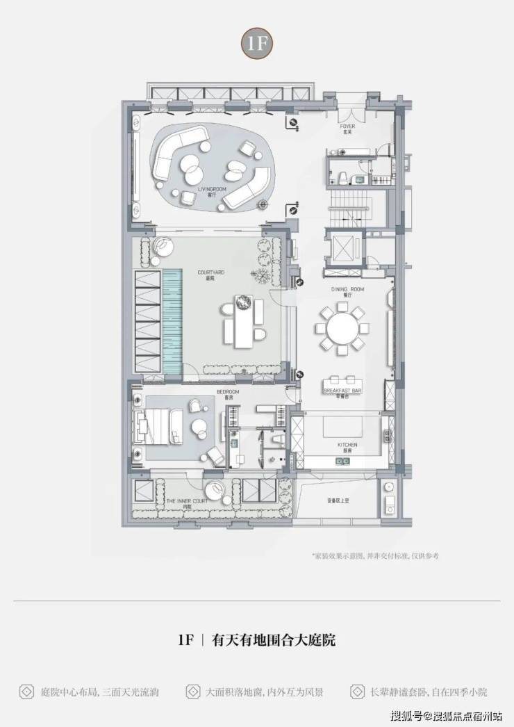 • 一层长辈套房设计,南向独立小庭院,莳花弄草,晨练太极自在四季