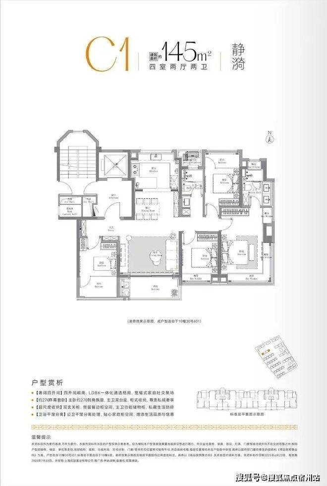 这是年轻家庭舒适改善户型,三口之家或三代同堂宜居。三开间朝南设计的全明户型,双南阳台 + 主卧约 270°转角飘窗,层高约 3.1 米,空间感、采光视野都相当不错。