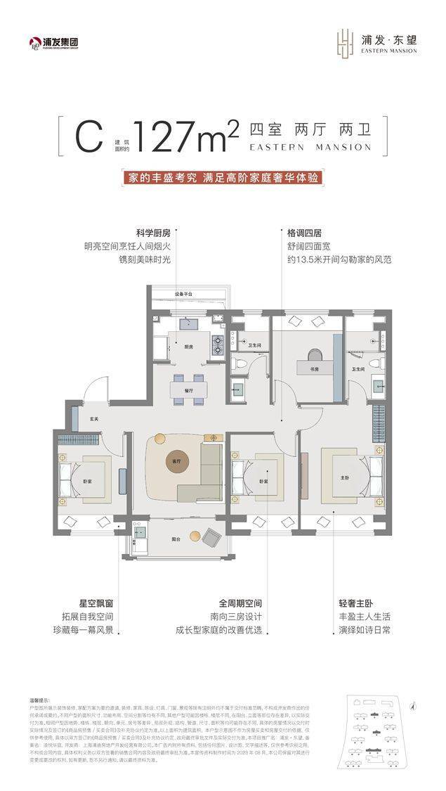 南向四开间,约13.5m奢适面宽,全飘窗设置,使得改善的面积段,竟拥有媲美大平层的舒适度☑️☑️浦发上品售楼处电话:400 - 8377 - 020☑️☑️