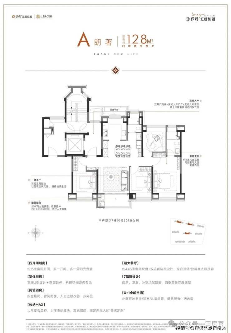 ◎真四开间朝南:2024年上海125-130㎡新房仅约9% 做到真四开间朝南,地铁口4房更少(数据来源网络)。该户型南向总面宽约13米,远超同面积段常见的 10 米面宽,采光视野佳。