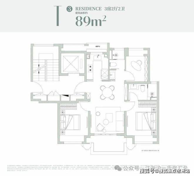 厨房、餐客厅、阳台形成直线通风廊道,南向三开间+宽尺客餐厅,轻松容纳二胎三代家庭的日常;