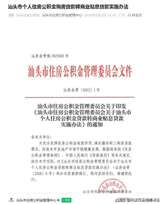 近日,汕头市住房公积金管理中心发布了《汕头市个人住房公积金购房贷款转商业贴息贷款实施办法》。