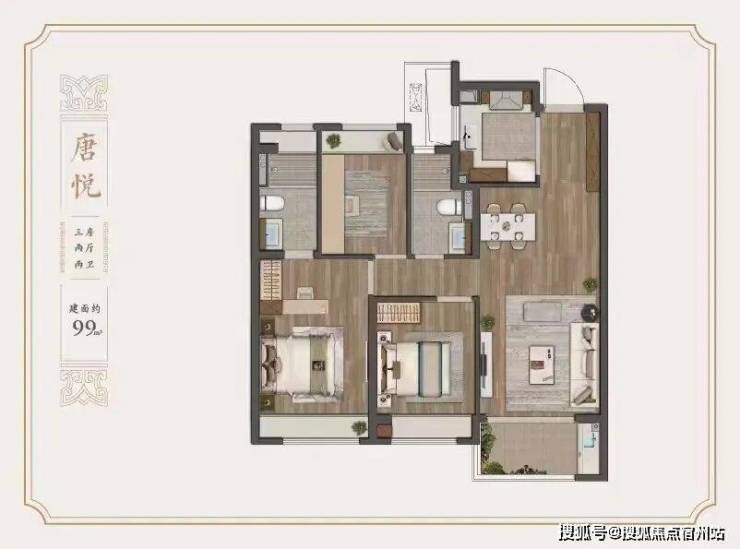 高层建面约99㎡3房2厅2卫