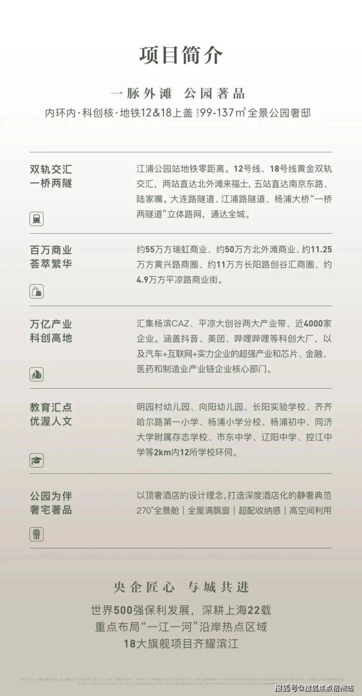 “中交集团上海总部、抖音集团上海滨江中心、中节能上海首座、滨江创智中心、美团上海科技中心、哔哩哔哩新世代产业园、量子城市时空创新基地”等在此沿江一字排开,中国未来五年重点发展的数字经济、工业互联网、量子技术等产业皆集聚于此,土地势能澎湃。☑️☑️保利外滩启park77售楼处电话:400-8377-020☑️☑️