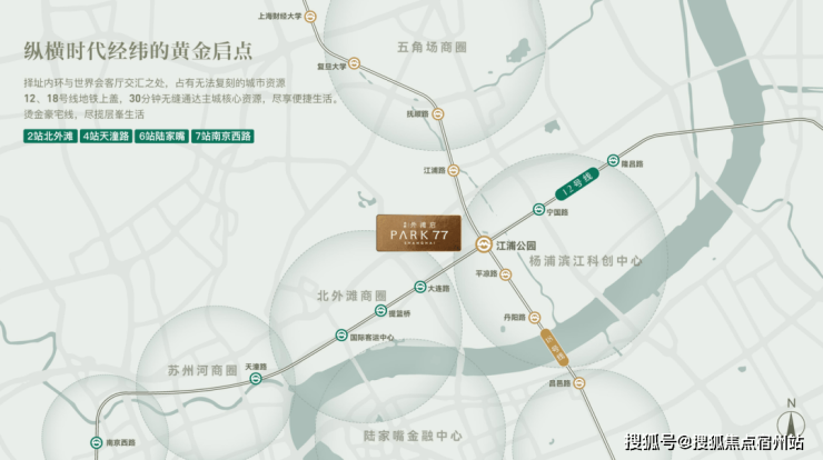 在此, 横贯北外滩、苏河湾、南京西路3大商圈的12号线,与纵连“世界文教-大国科创-全球金融”3大产业的18号线,在家门口江浦公园站形成黄金十字交汇。