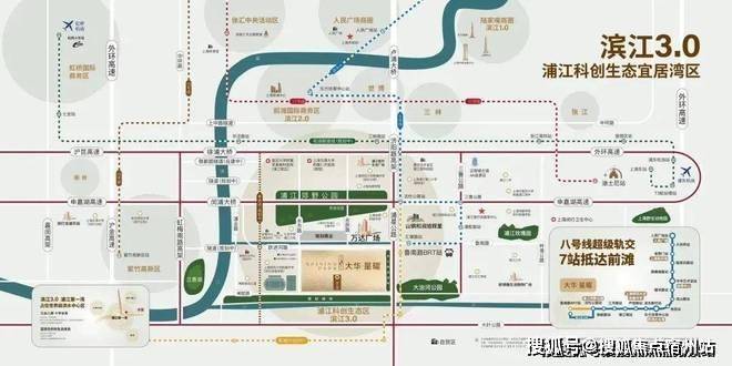 项目距离浦江线汇臻路站约1.3KM,5站即达沈杜公路站并与8号线换乘,可一线直达前滩。或通过BRT快线可一站无缝对接8号线沈杜公路!