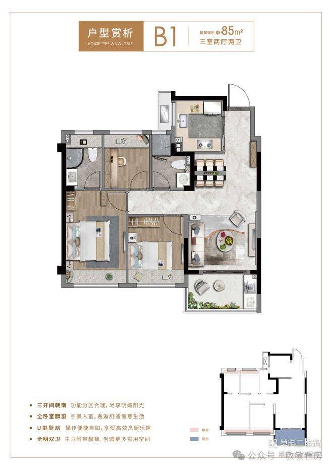 B1户型 建面约85㎡,三房二厅两卫☑️☑️中铁世纪尚城售楼处电话:400 - 8377 - 020☑️☑️