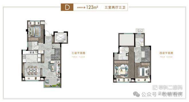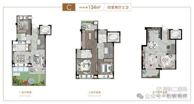 建筑面积:约73-134平(三房/四房)