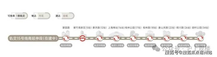轨交网络: 5号线、15号线南延伸段(在建中)、市域嘉闵线南延伸段(规划中)、沪乍杭高铁(规划中)及南枫线(在建中)