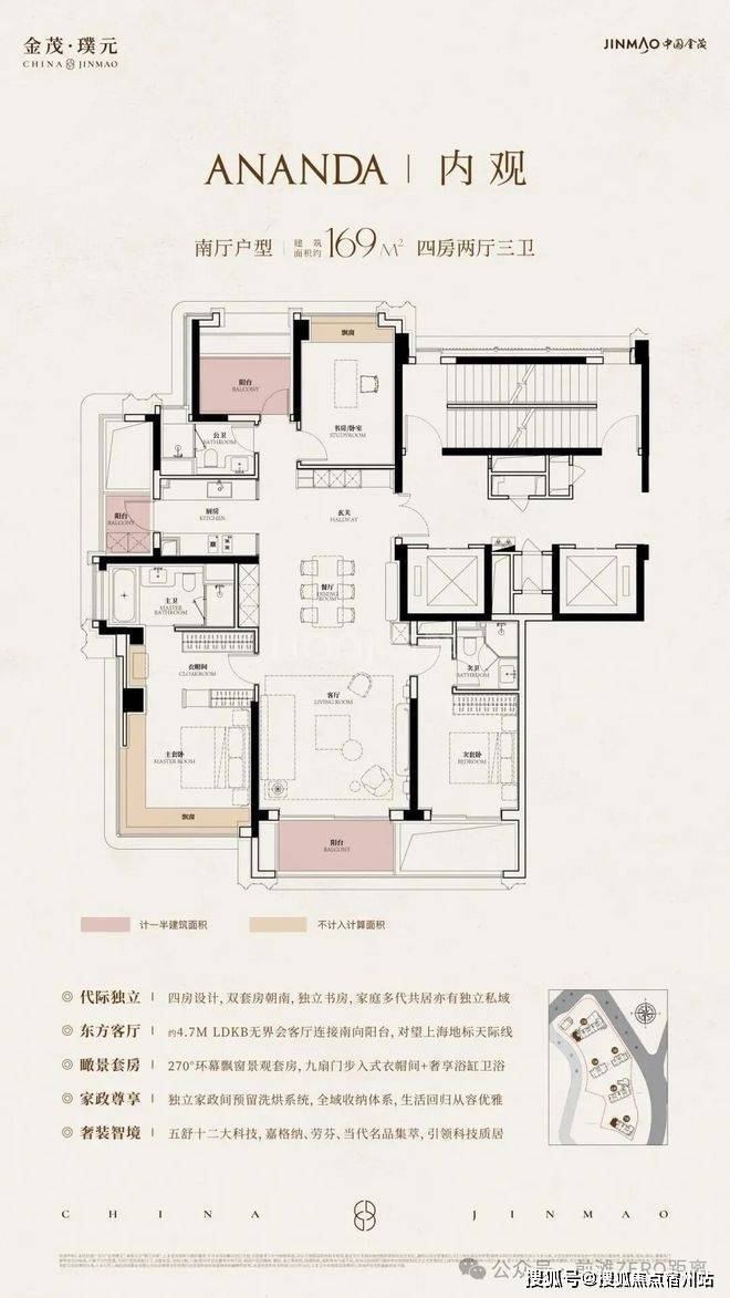 科技住宅系统:项目最大的卖点是金茂的“五衡三智”科技系统,能实现室内恒温、恒湿、恒氧,提升居住舒适度。