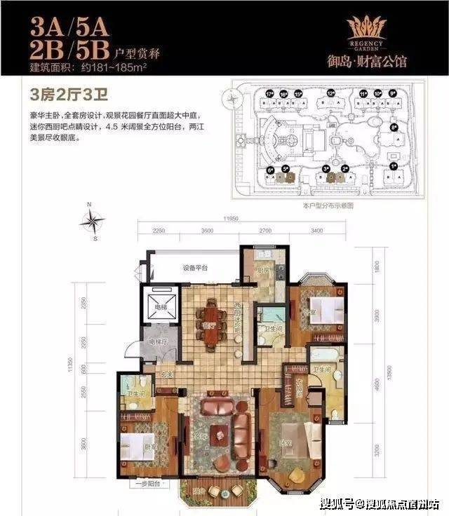 面积:181㎡-193㎡户型:3房2厅3卫▼